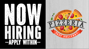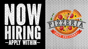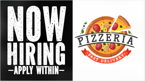 We recommend displaying your Now Hiring sign in a place where it could be immediately seen by passersby. This could be in front of your store, near windows, yards, or the counter.