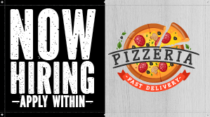 2. Consider the Size of Your Sign - How big do you want your sign or banner to be? Generally speaking, the larger the sign the more attention it will receive. The size of your now hiring sign will also directly communicate to its viewers just how serious you are about finding new employees. An outdoor banner that is 10 feet wide sure says a lot more than a 6-inch decal placed in the corner of a window.