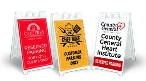 - Choose the Best Location - It goes without saying that the most common location to place your reserved parking sign is right at the parking space that is being reserved. This may work for up to a few parking spaces, but what if you are trying to reserve an entire parking lot or location? One thing you can do is place additional signs at the entrance to the parking location (consider using A-frame signs for this) as well as on light posts, walls, or other structures or surfaces.
