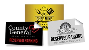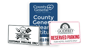 While the signs listed above are the most common choices for reserved parking signs, they are not the only choice you have. Other signs you can use include yard signs, vinyl banners, brushed aluminum signs, magnets & more. Be sure to check out our homepage to see all of the sign types we have available.