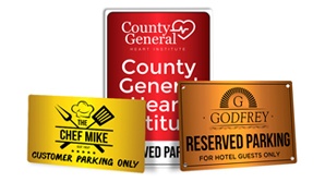 Prevent the general public from parking in designated areas at your business, restaurant, church, or hotel with reserved parking signs. This can include customer parking, employee parking, VIP parking and more. These signs can be fully customized with any message, color, image, or logo at no additional charge. They can also be created at any size, while the most common size used is 12” wide and 18” tall. They are usually made from either aluminum or reflective aluminum, but can be created from any of our available sign materials.